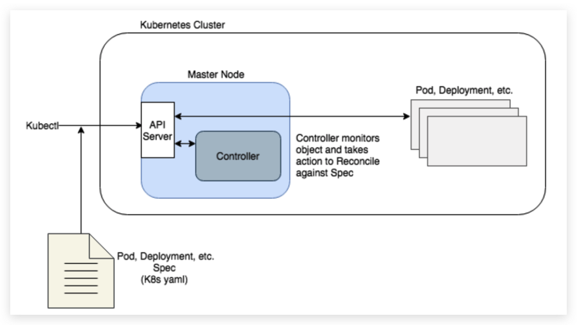 通过这种方式,Kubernetes方便的代替了大量手动工作,以维护运行时的无状态应用。然而,它仅限于K8S预定义的对象类型(Pod,Deployment,Namespace,Service,DaemonSet等),这些对象类型中的每一个都具有预定的行为和方式,如果它们和配置发生了偏离,他们就会与配置相协调(Reconcile),以达到所期望的配置。